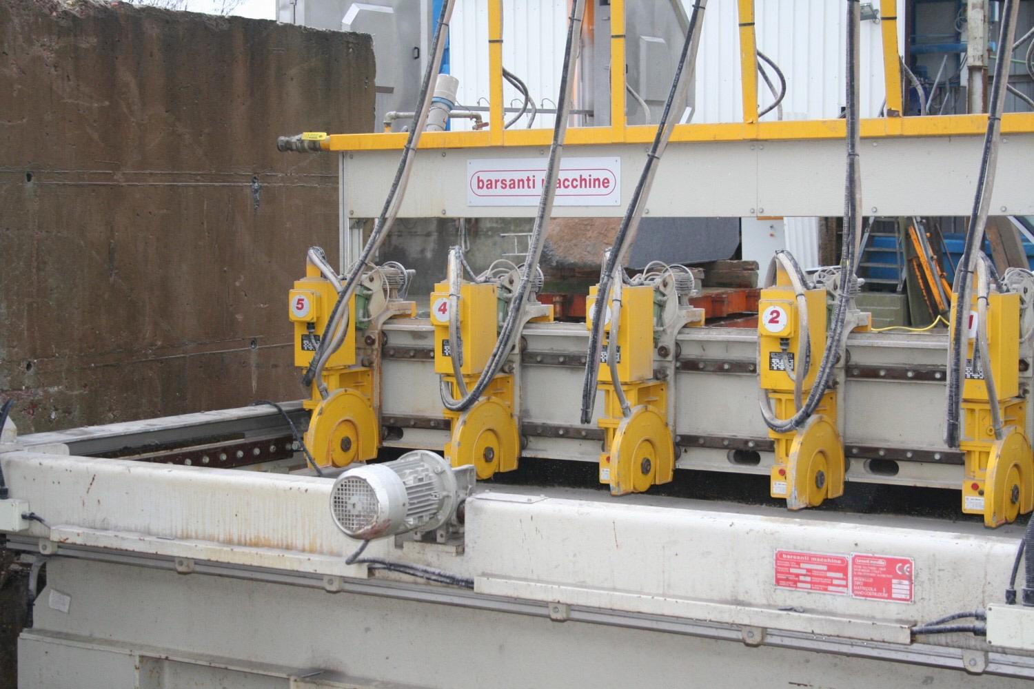 working width 600mm, nr 5 spindle model cutt thickn. 50mm Minimum distance between spindles mm. 200 cutt disk diam 350mm, Water coms. Ltrs 75/1' injcl. Nr 2 roller table |